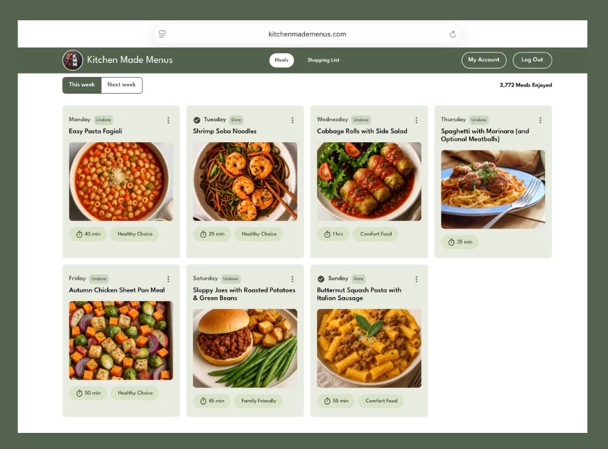 We created Kitchen Made Menus to give you more of those moments. Less pressure. More presence. Real meals, made for real life.