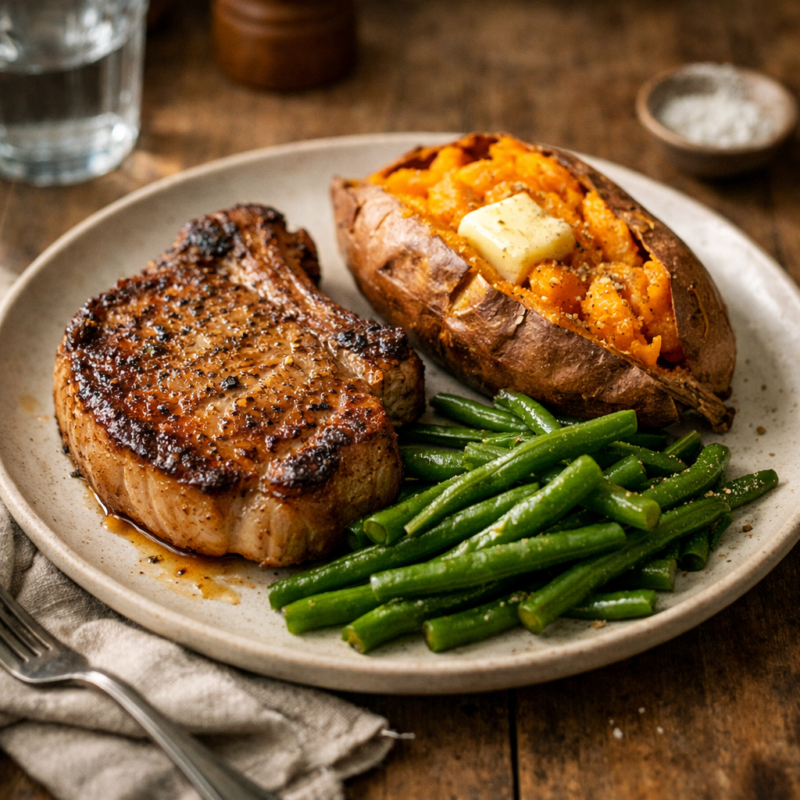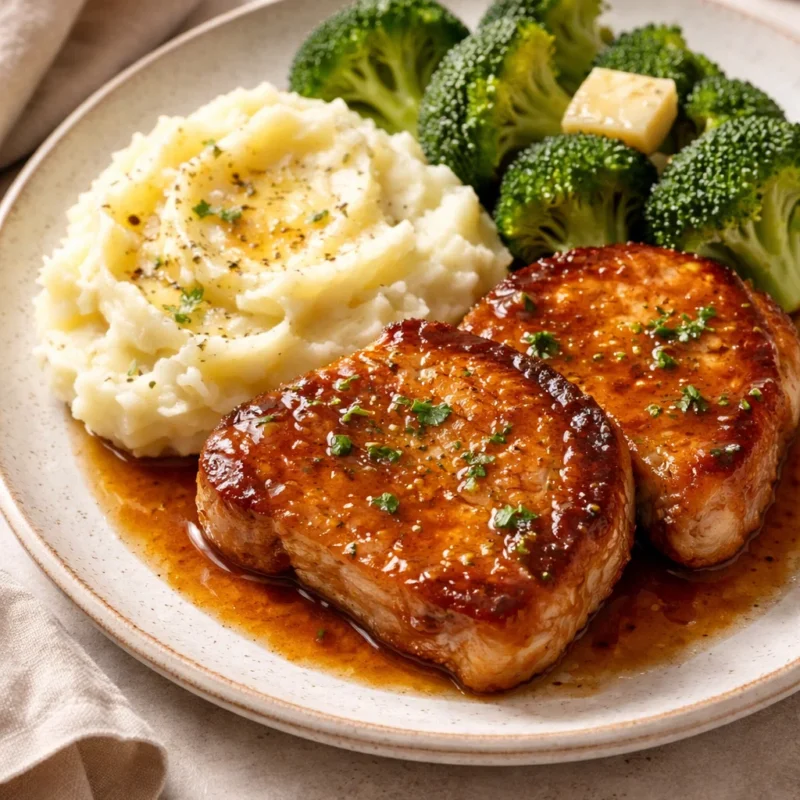 Honey Garlic Pork Chops with Mashed Potatoes and Broccoli Honey Garlic Pork Chops with Mashed Potatoes and Broccoli