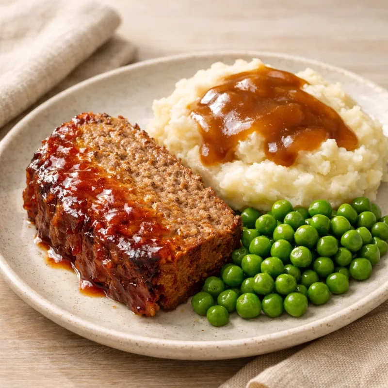 Classic Meatloaf with Mashed Potatoes & Gravy, Green Peas Classic Meatloaf with Mashed Potatoes & Gravy, Green Peas