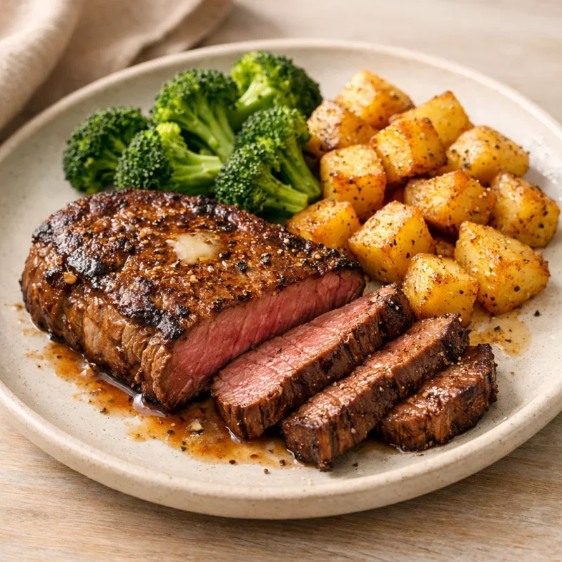 Top Sirloin Steaks with Roasted Potatoes & Broccoli Top Sirloin Steaks with Roasted Potatoes & Broccoli