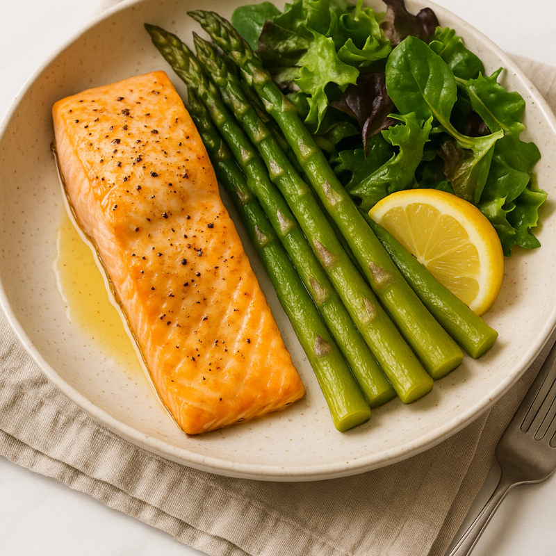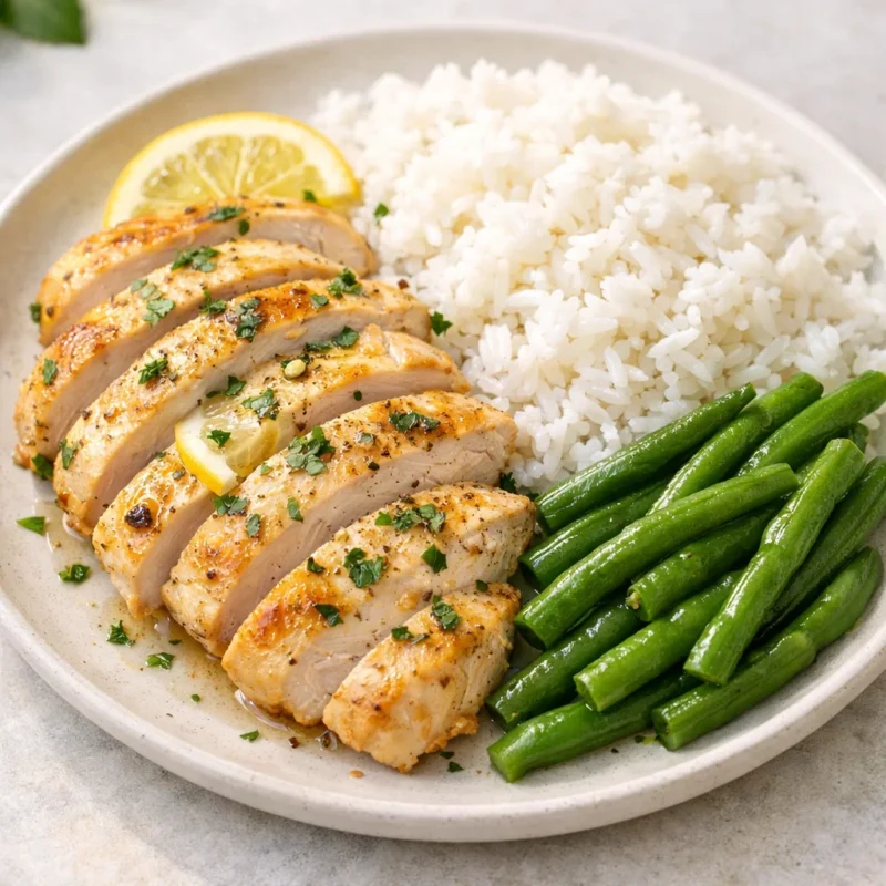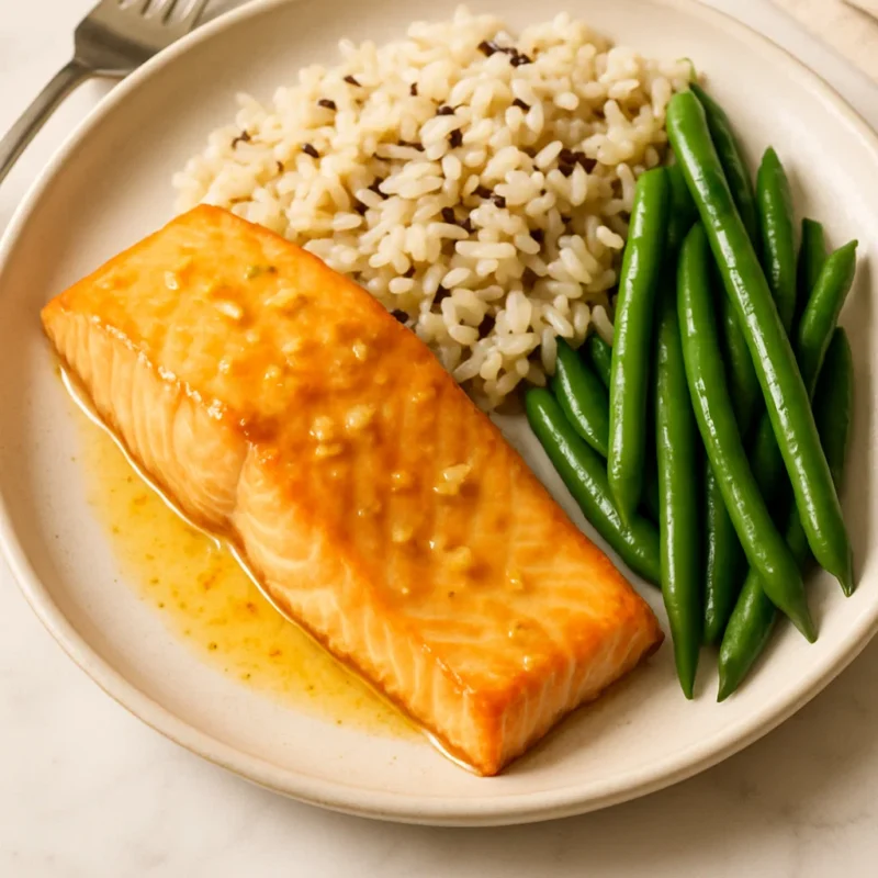 Garlic Butter Salmon with Wild Rice & Steamed Green Beans Garlic Butter Salmon with Wild Rice & Steamed Green Beans