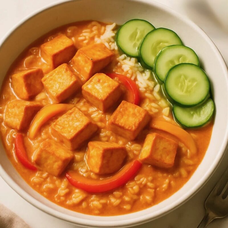 Thai Red Curry with Tofu, Jasmine Rice & Cucumber Salad Thai Red Curry with Tofu, Jasmine Rice & Cucumber Salad