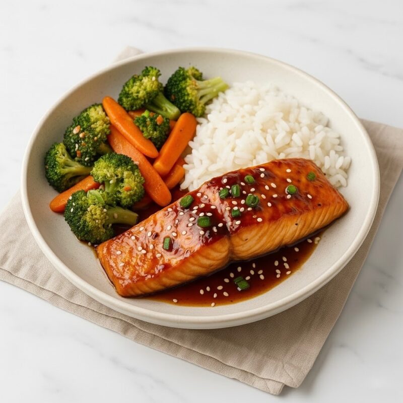 Teriyaki Salmon with Steamed Jasmine Rice & Stir-Fried Broccoli and Carrots Teriyaki Salmon with Steamed Jasmine Rice & Stir-Fried Broccoli and Carrots