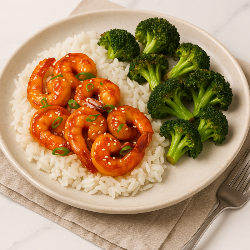 Chili Crisp Shrimp with Jasmine Rice & Roasted Broccoli Chili Crisp Shrimp with Jasmine Rice & Roasted Broccoli